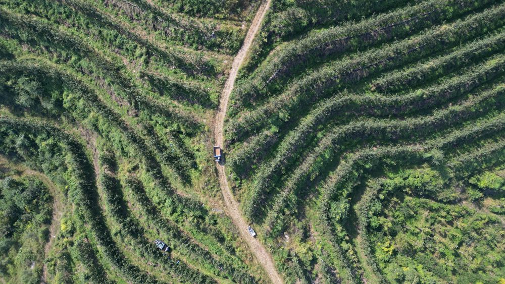 ↑这是河北省玉田县唐自头镇一处经荒山开发而建的果园(9月15日摄,无人机照片)。 新华社记者 牟宇 摄